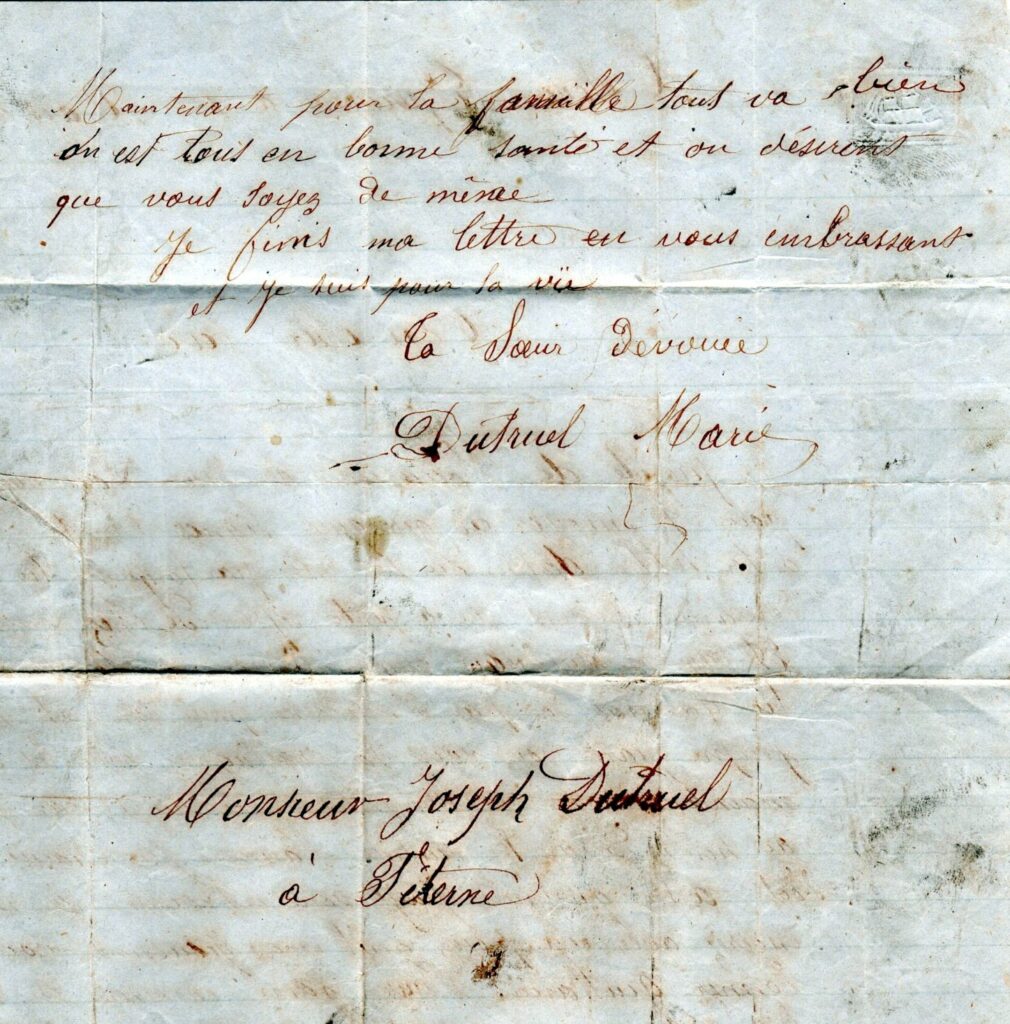 Je finis ma lettre en vous embrassant et je suis pour la vie