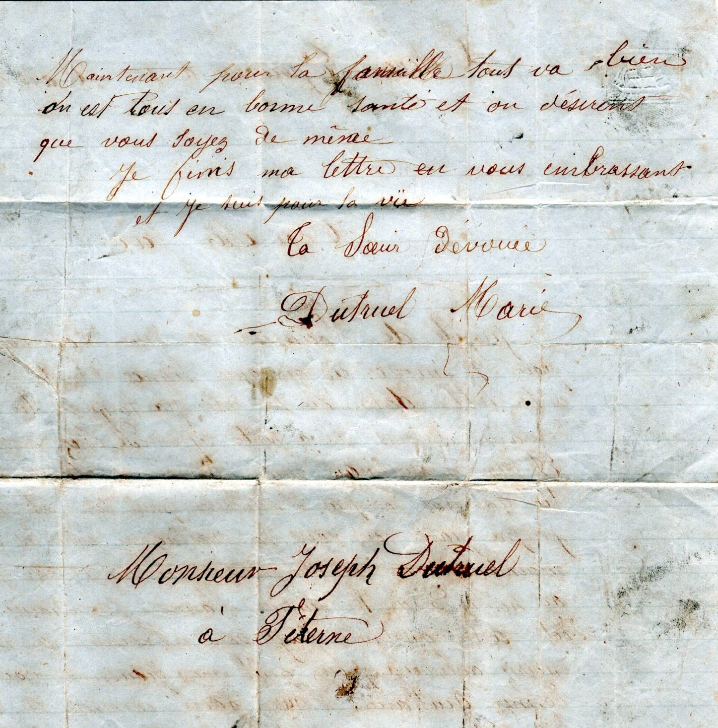 Maintenant pour la famille tout va bien, on est tous en bonne santé et on désire que vous soyez de même.